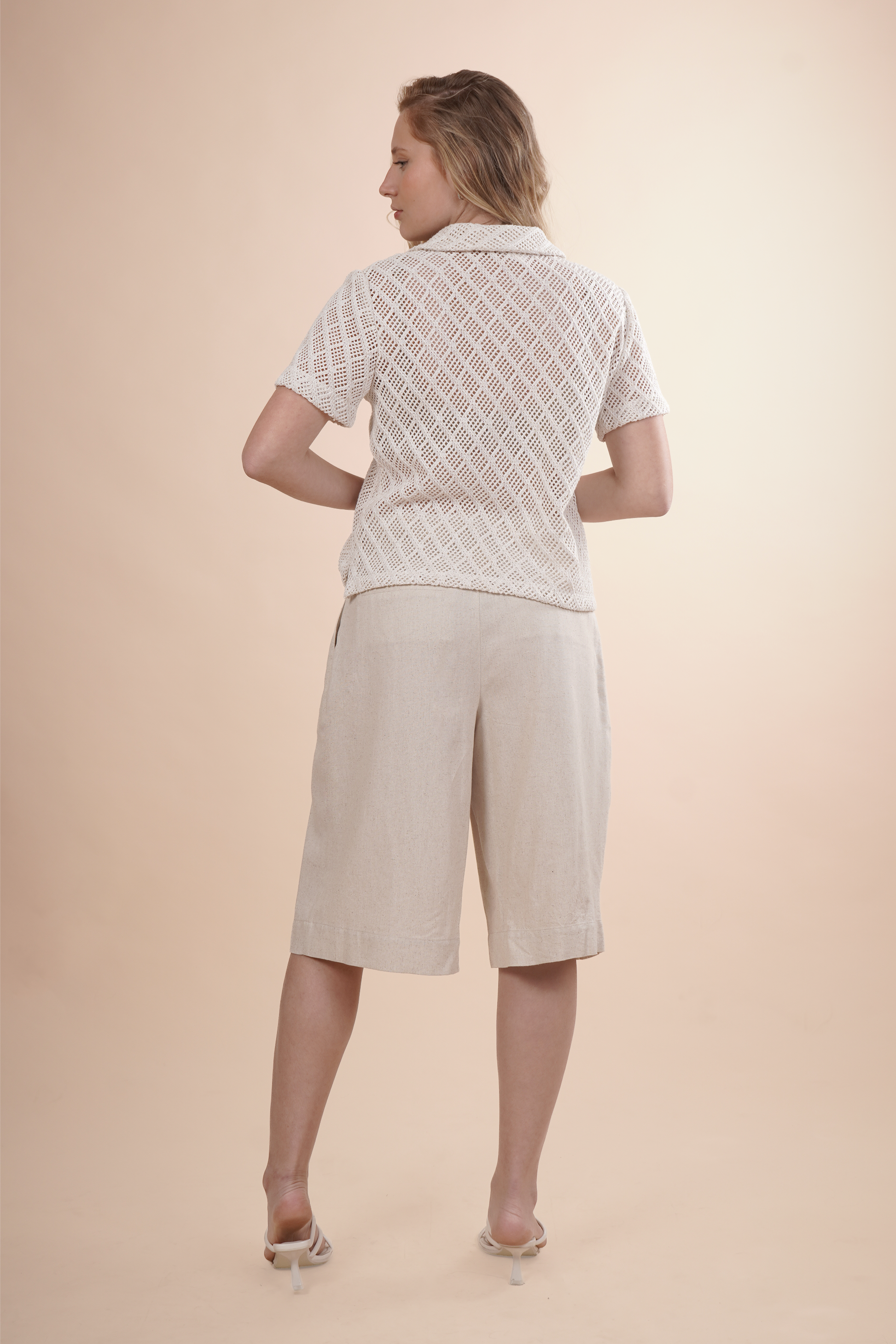 Blusa de crochet camisera y cuello sport.