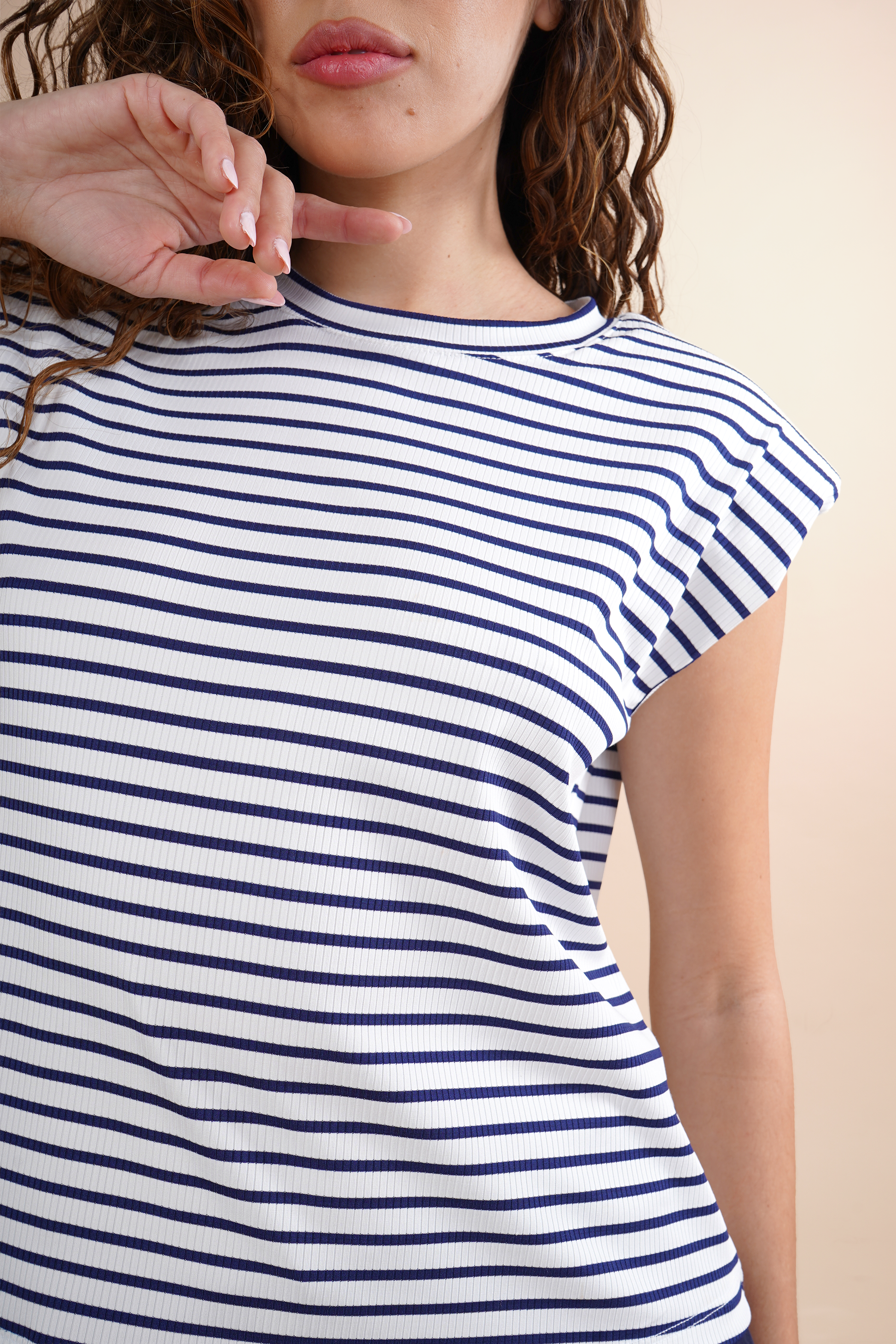 Playera cuello redondo con hombreras.