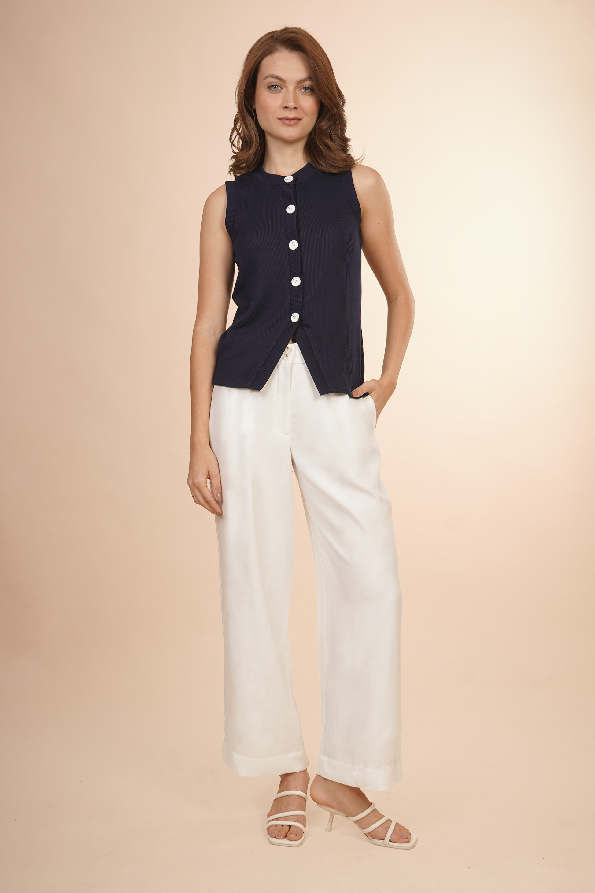 Chaleco con botonadura blanca.