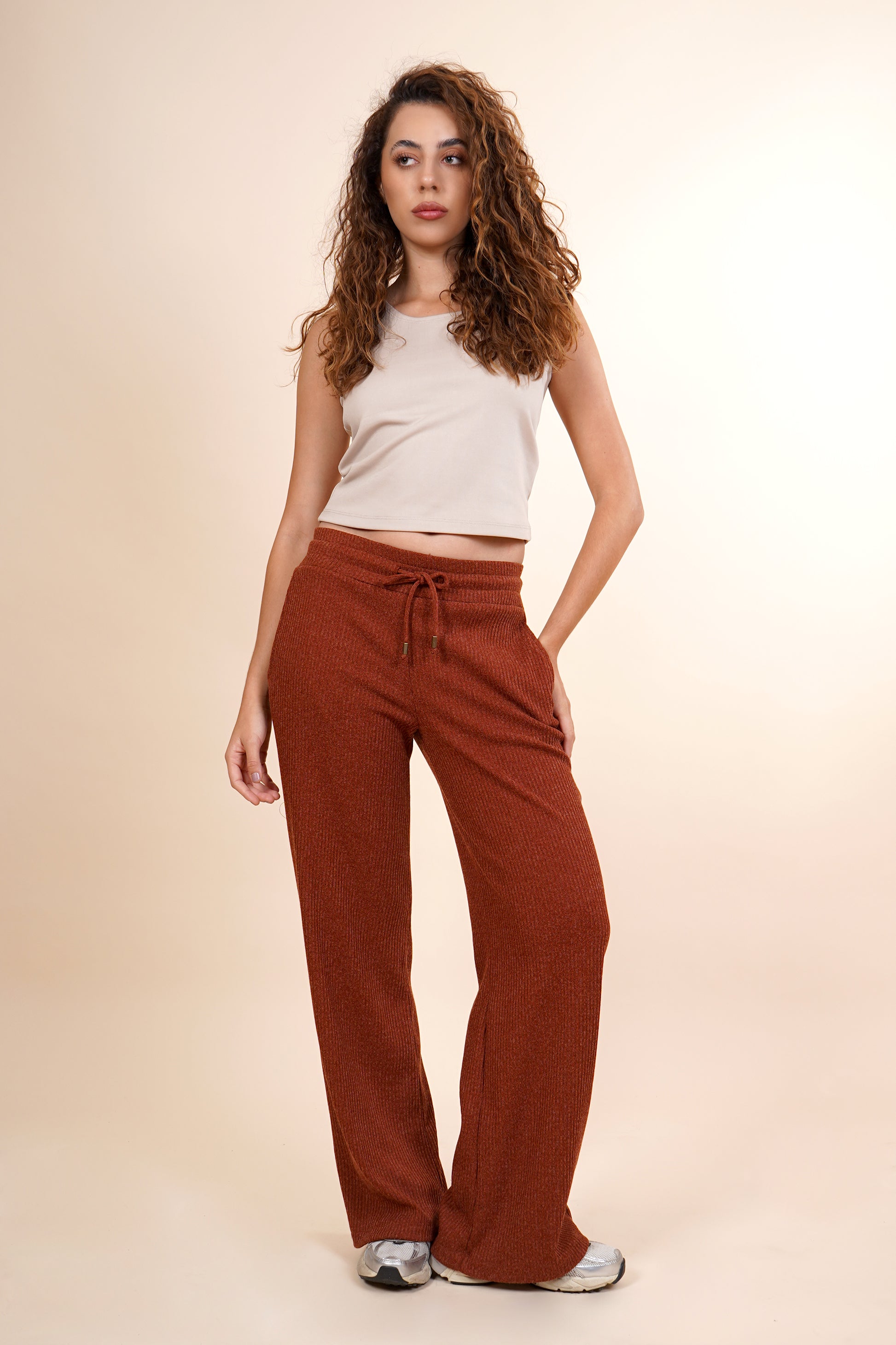 Pantalón tipo pants con corte recto en tejido suave. Bolsillos en frente y cintura ajustable.